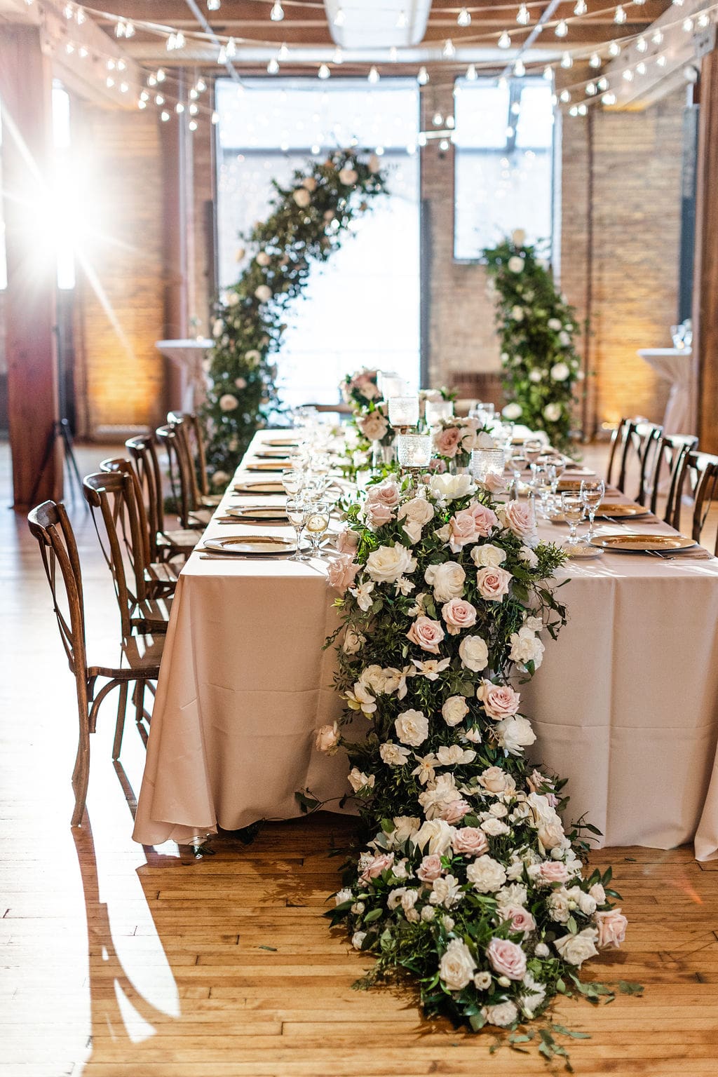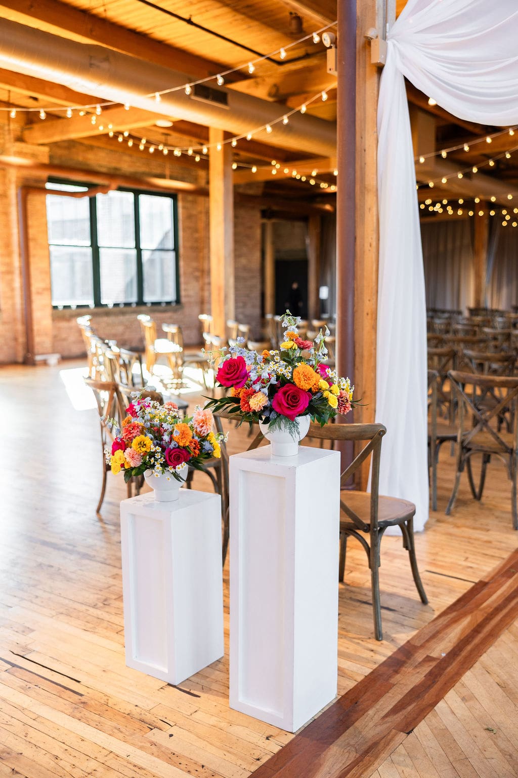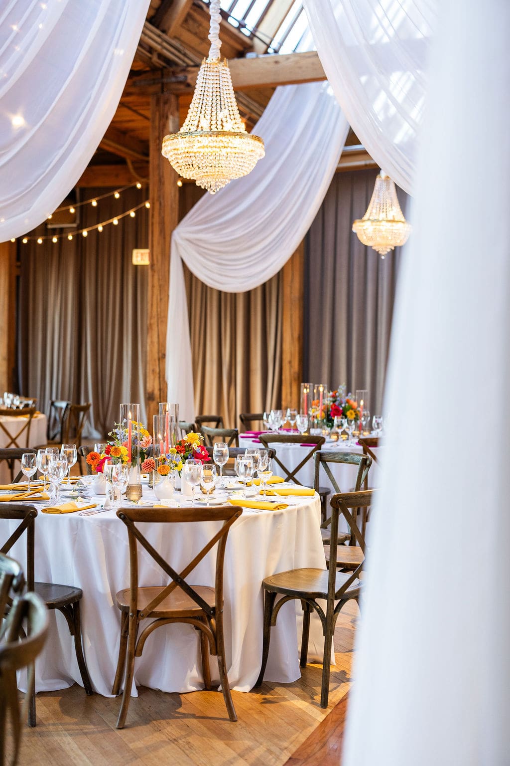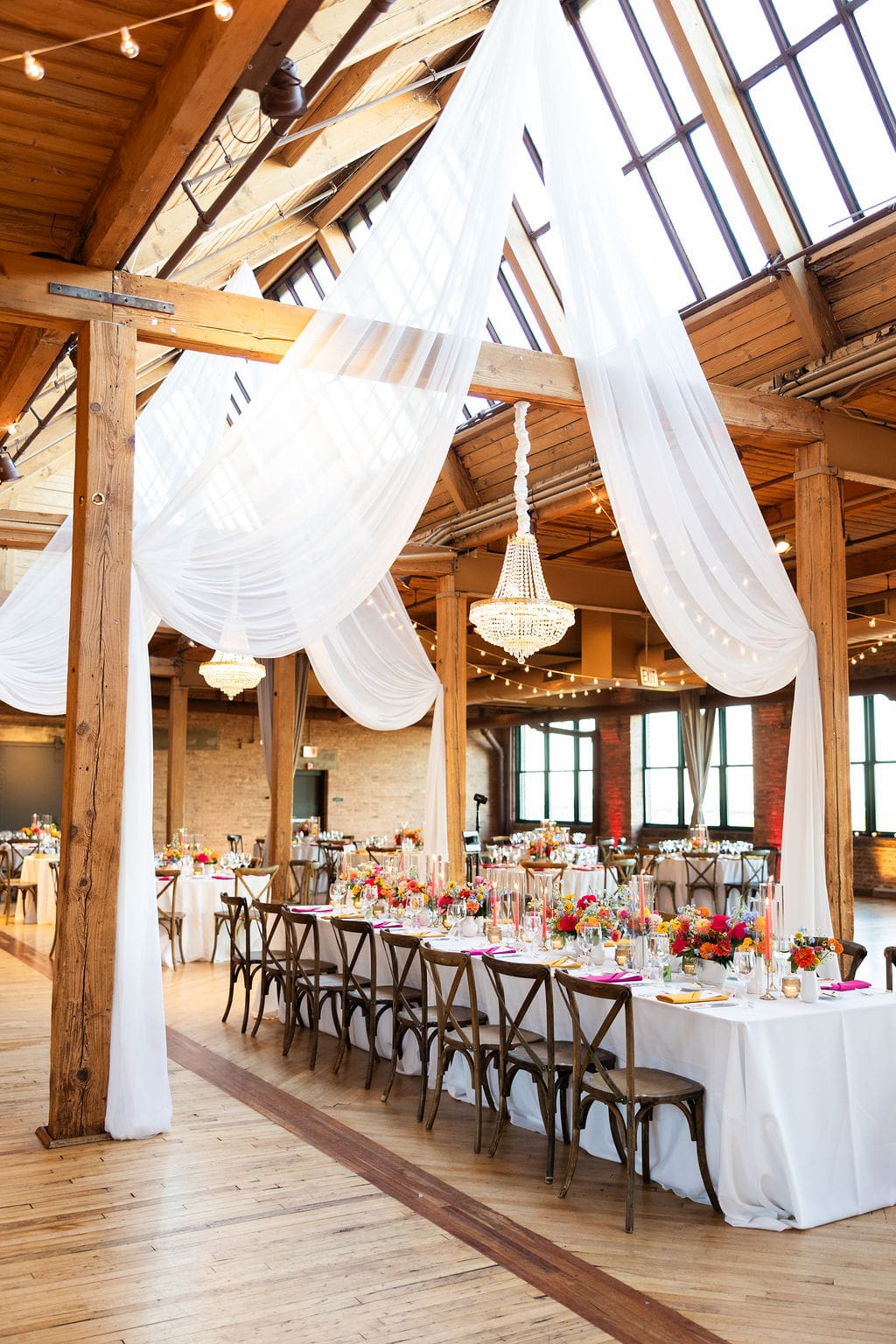 The Skyline Loft is one of the most popular spaces at Bridgeport Art Center. It features exposed brick, soaring ceilings, and incredible natural light. The space can be fully customized with draping, lighting, and florals to match your vision.