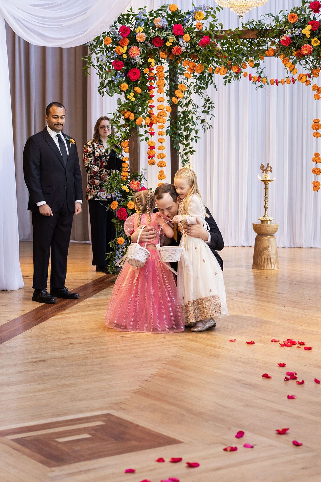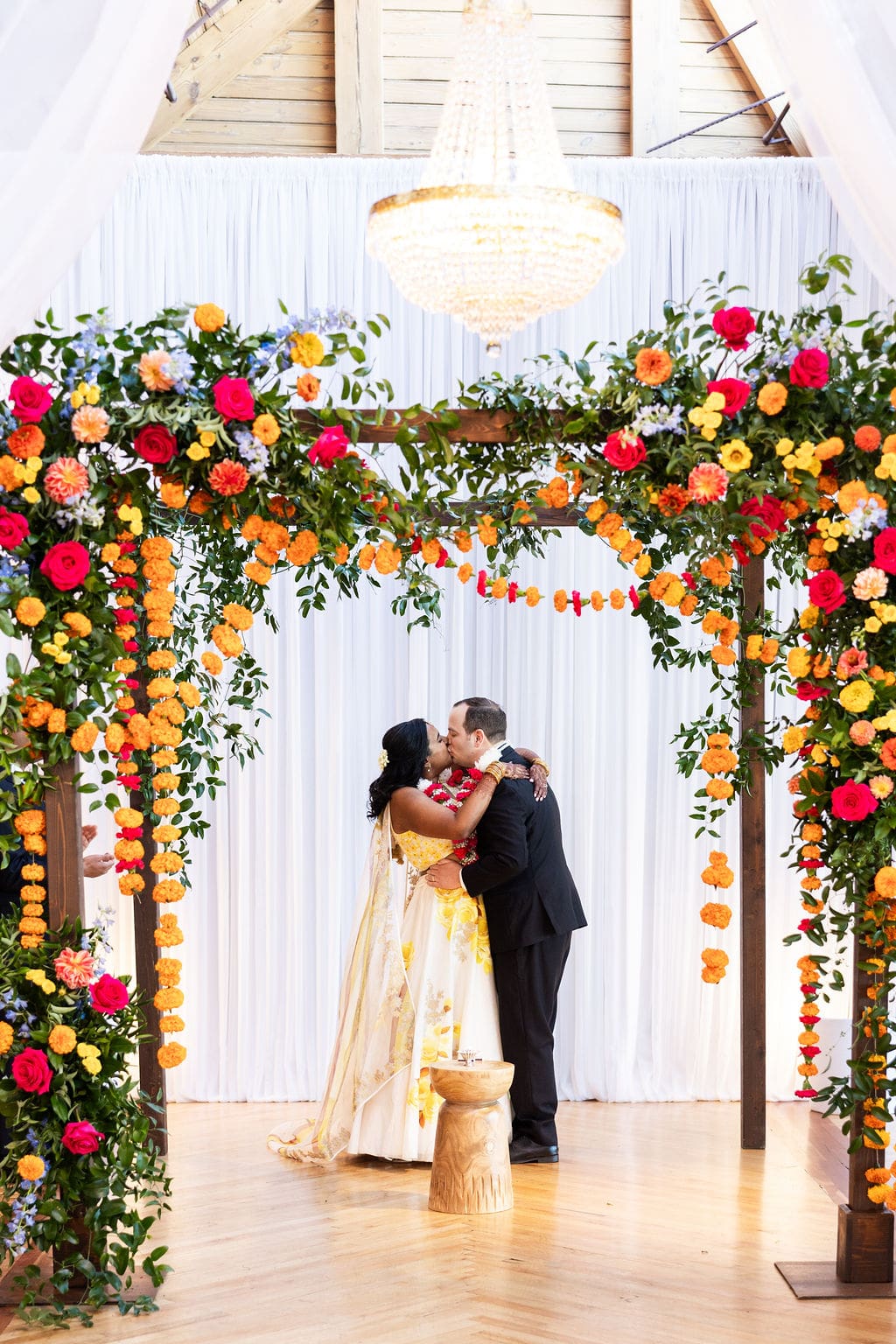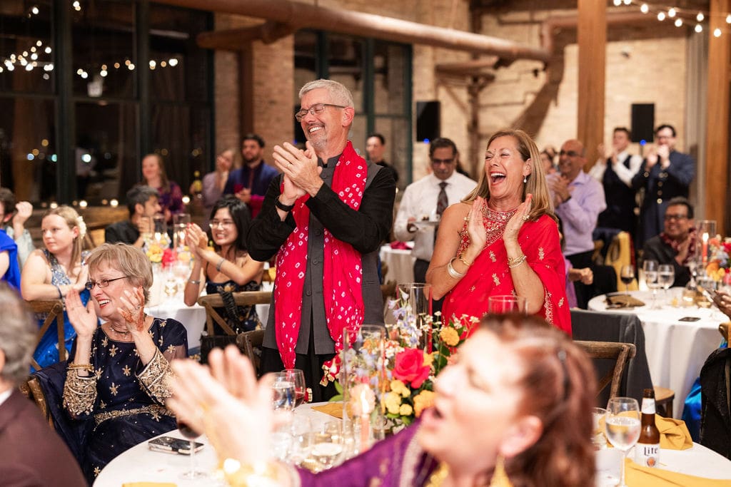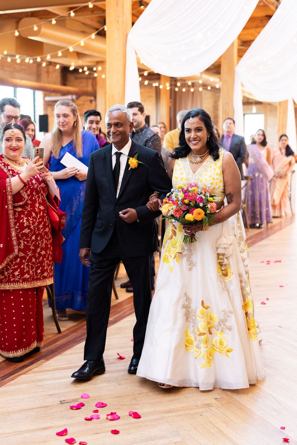 One of my favorite unexpected touches is the freight elevator that takes guests up to the Skyline Loft. It is spacious enough to host a bar, which means guests can grab a cocktail (or chi tea, like guests did at Shreya and Austin’s wedding).